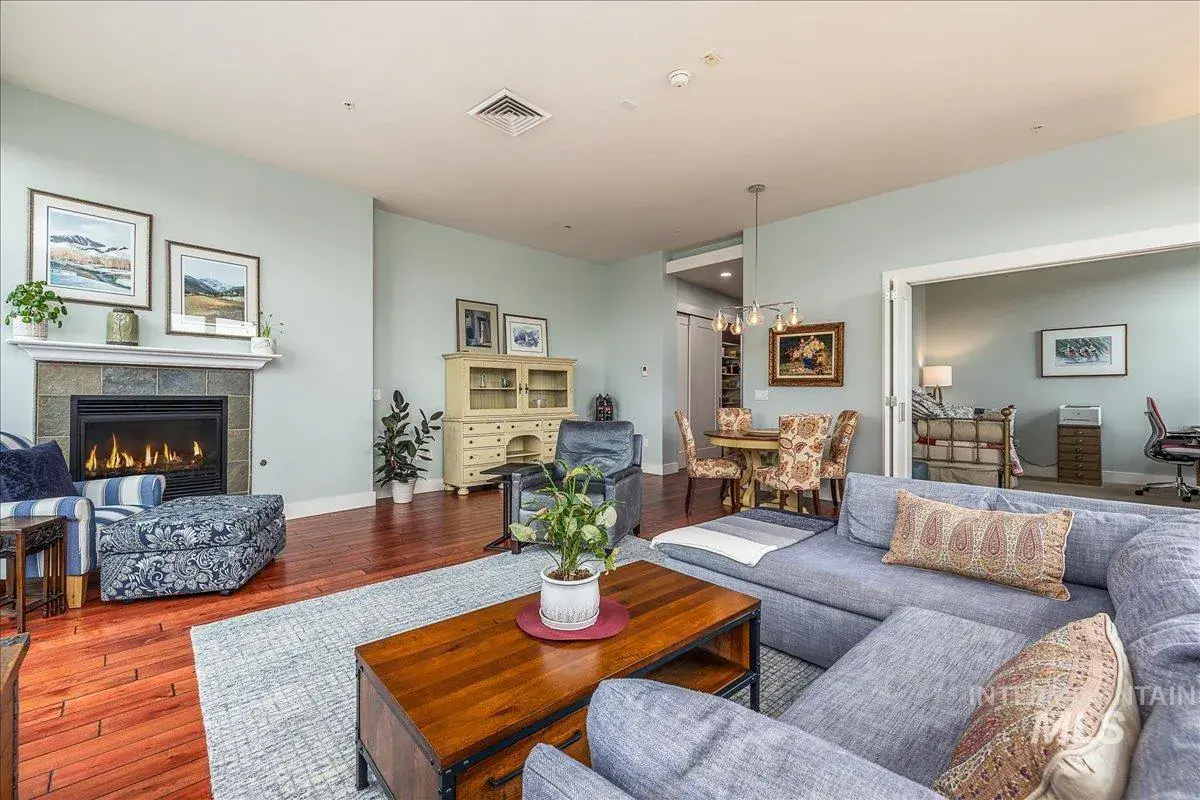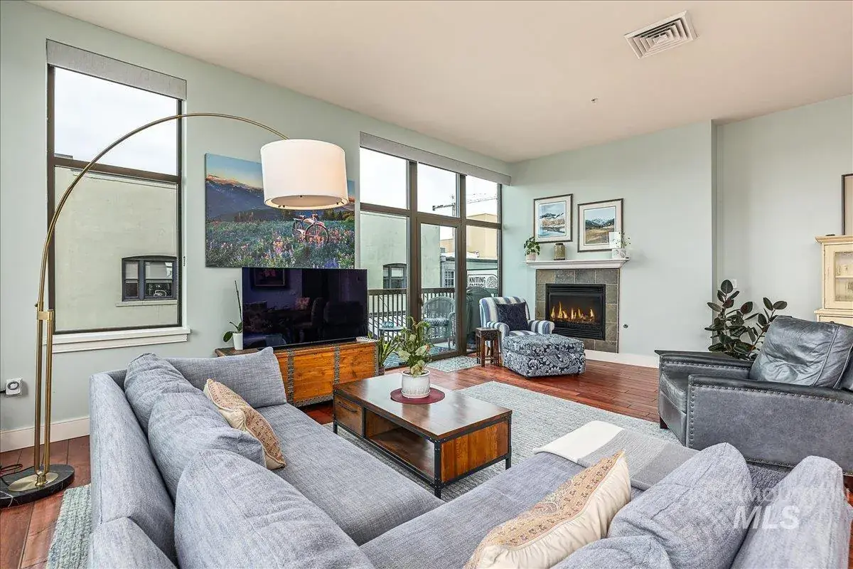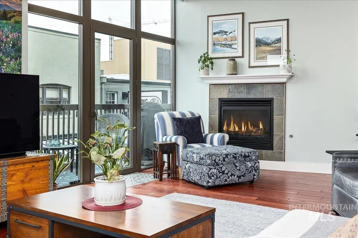 Experience Urban living in the heart of downtown Boise. Totally turnkey in the BoDo Cultural District above 8th street marketplace with restaurants. Coffee shops, movie theater and more! A well designed layout makes entertaining a plus! Corner unit with its large great room has one balcony & two juliet balconies, gas fireplace and over 10 ft ceilings with an abundance of windows to let lots of natural light in! The beautiful galley kitchen is complemented by barn doors that can be closed off, along with a large butler-style pantry for added convenience. Master enjoys walk-in closet, tiled shower and wall of windows. 2nd bed/office/den has no closet. Includes a Stackable W/D. Deeded storage space and secured lobby. HOA dues include water & gas. Owner pays Idaho power & cable/internet. Great storage closet in the unit. Monthly Parking available in Hampton Hotel parking garage, steps from Unit.