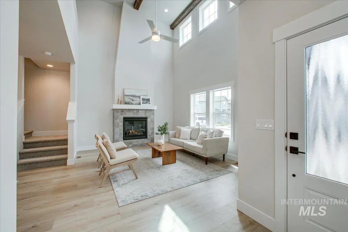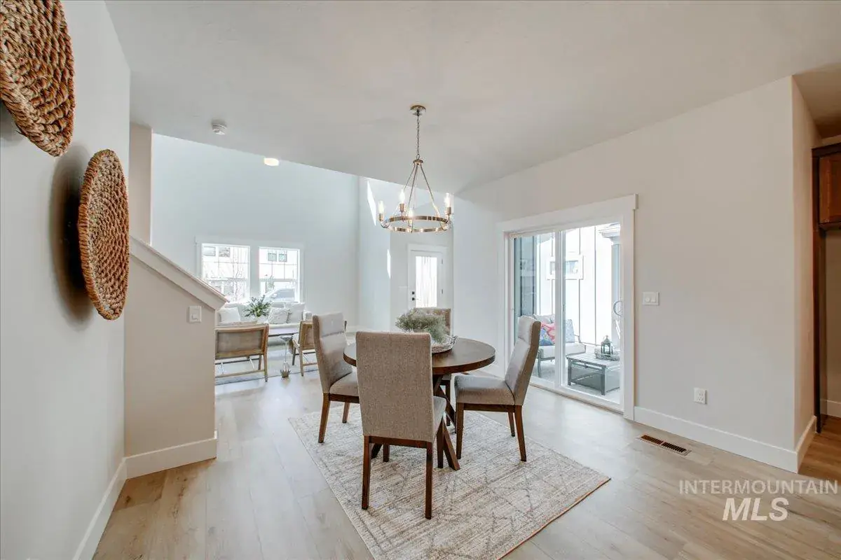 Low-maintenance luxury living just steps from downtown Eagle, nestled in a quiet boutique community! Rare main level master bedroom! Spa-like ensuite w/ dual vanities, full tile shower w/ built-in bench, & WIC. Stunning 18′ ceiling in living room w/ tapered gas fireplace & stained beams above. Gourmet kitchen w/ dove-tail soft-close cabinets, under-cabinet lighting, enormous quartz island, upgraded SS LG appliances (air fry oven!), decorative range hood, beverage bar w/ open iron shelving, & walk-in pantry w/ barn door. Central dining room opens to private side courtyard perfect for outdoor entertaining. Upstairs offers 2 additional bedrooms, plus an office or flex space, & bonus room which is open to below. Deep alley-load garage, full landscaping, energy efficient HERS rating, & more. An easy stroll to great restaurants, Eagle Sat Market, Guerber Park, Boise River Greenbelt, Eagle Hills Golf Course, or hop on nearby HWY 55 for quick escape to the mountains! Quality & location at a remarkable val