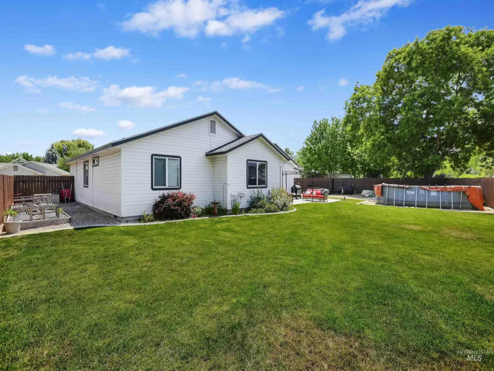 Must see this almost completely updated home with NO back neighbors and RV parking! Home features 4 beds, 2 baths, 3 car garage with Epoxy floors and shelving, Possible two living areas or one can be used as formal dining. Recent updates include: New paint, floors, windows, kitchen with painted cabinets and concrete countertops, newer HVAC and roof! Enjoy your private backyard oasis on your patio or in your above ground pool! You also have a storage shed, garden area and endless possibilities with almost a half an acre in the heart of Meridian!