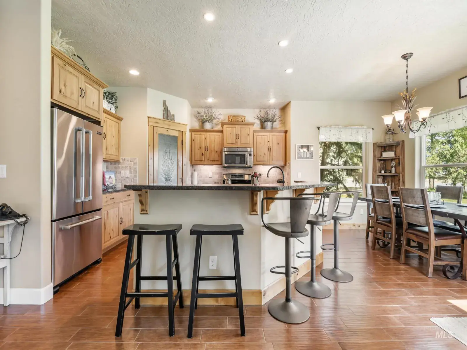 Listing Provided Courtesy of Homes of Idaho at 208-442-8500*Price Improvement!*This impeccably designed custom home offers a charming country ambiance. As you step inside, you are welcomed by a gorgeous floor-to-ceiling rock fireplace with wood mantel giving the open floorplan a cozy atmosphere. Each room boasts its own distinctive characteristics adding to the charm of the home. The kitchen features custom cabinetry & granite, upgraded appliances, breakfast bar & dining area with views of the backyard. Note the custom pantry door & lighting fixtures. Master ensuite has a lighted cove ceiling, tiled bathroom with soaker tub & dual vanities. Upstairs, you will find the 4th bedroom/office with a viewing deck for relaxing under the gorgeous sunsets & an additional TV room. The tranquil backyard has picturesque views of a pond & distant hillsides. With numerous upgraded amenities & thoughtful details to include: wood doors, added efficiency for heating/cooling & detailed lighting fixtures, truly make this home exceptional.